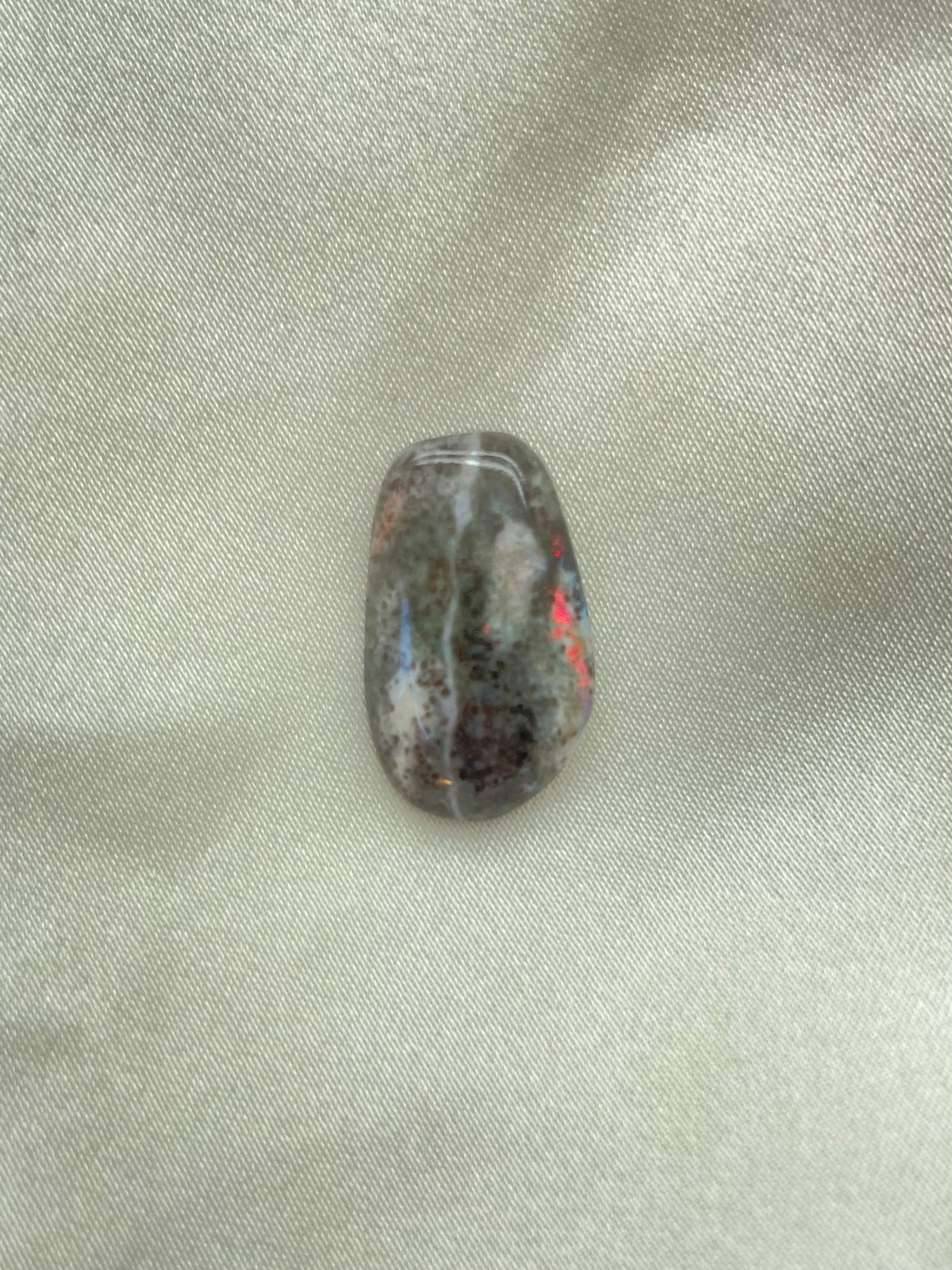 Andamooka opal is sugared and heated to create this type of incredible colorful black opal. 19x12mm