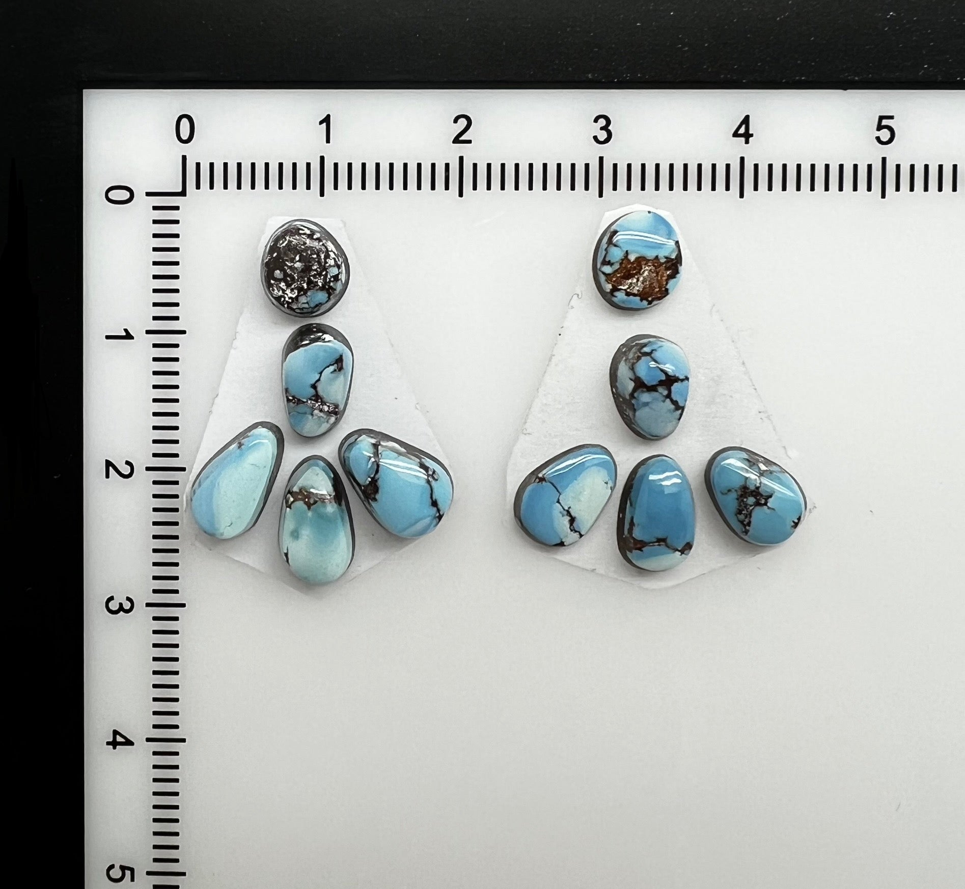 Golden Hill Turquoise. Backed. Aprox 5mm for the more round ones and 8x5mm for the pears.