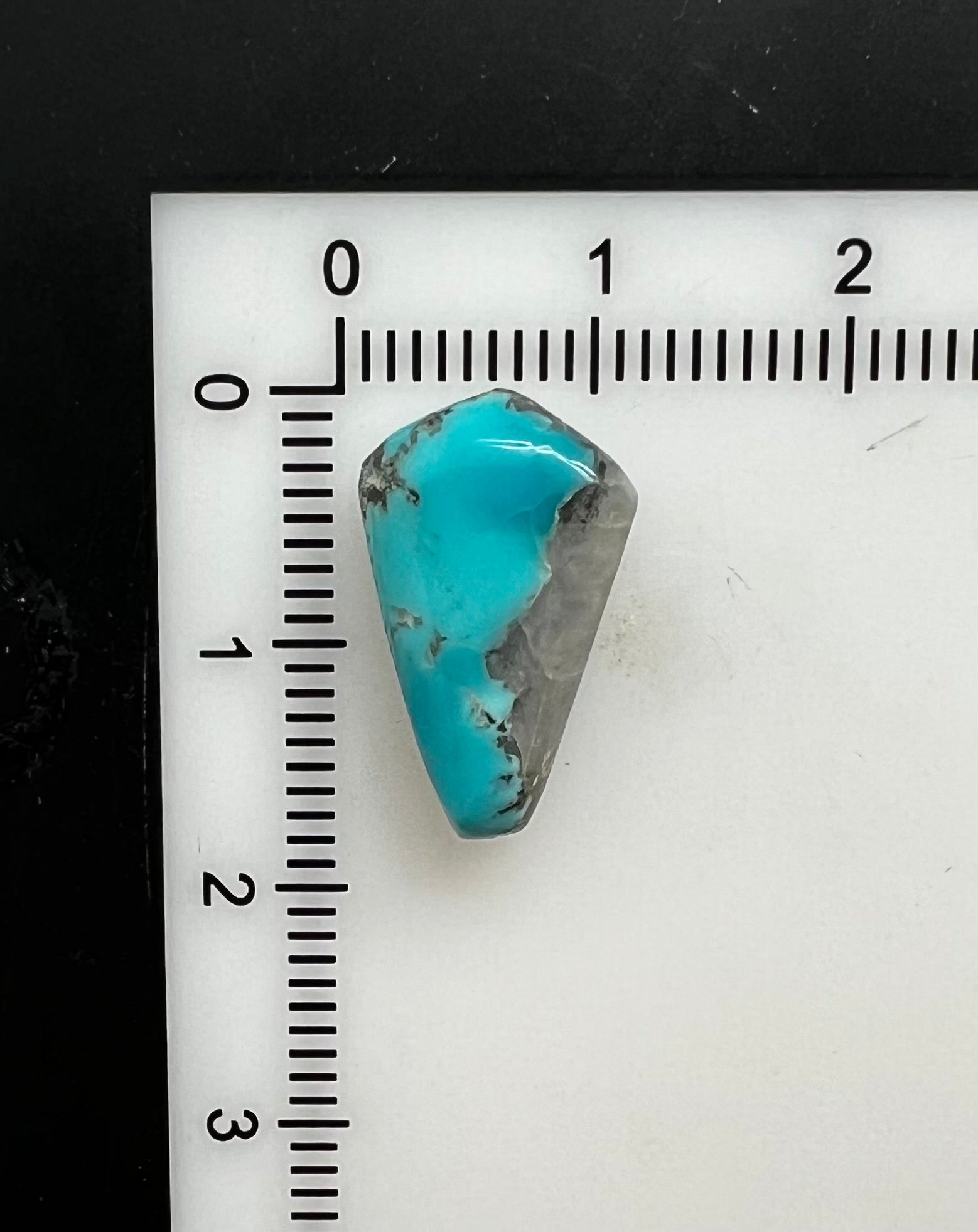 US mined unbacked freeform turquoise cabochon with quartz inclusion. 11mm x 18mm.