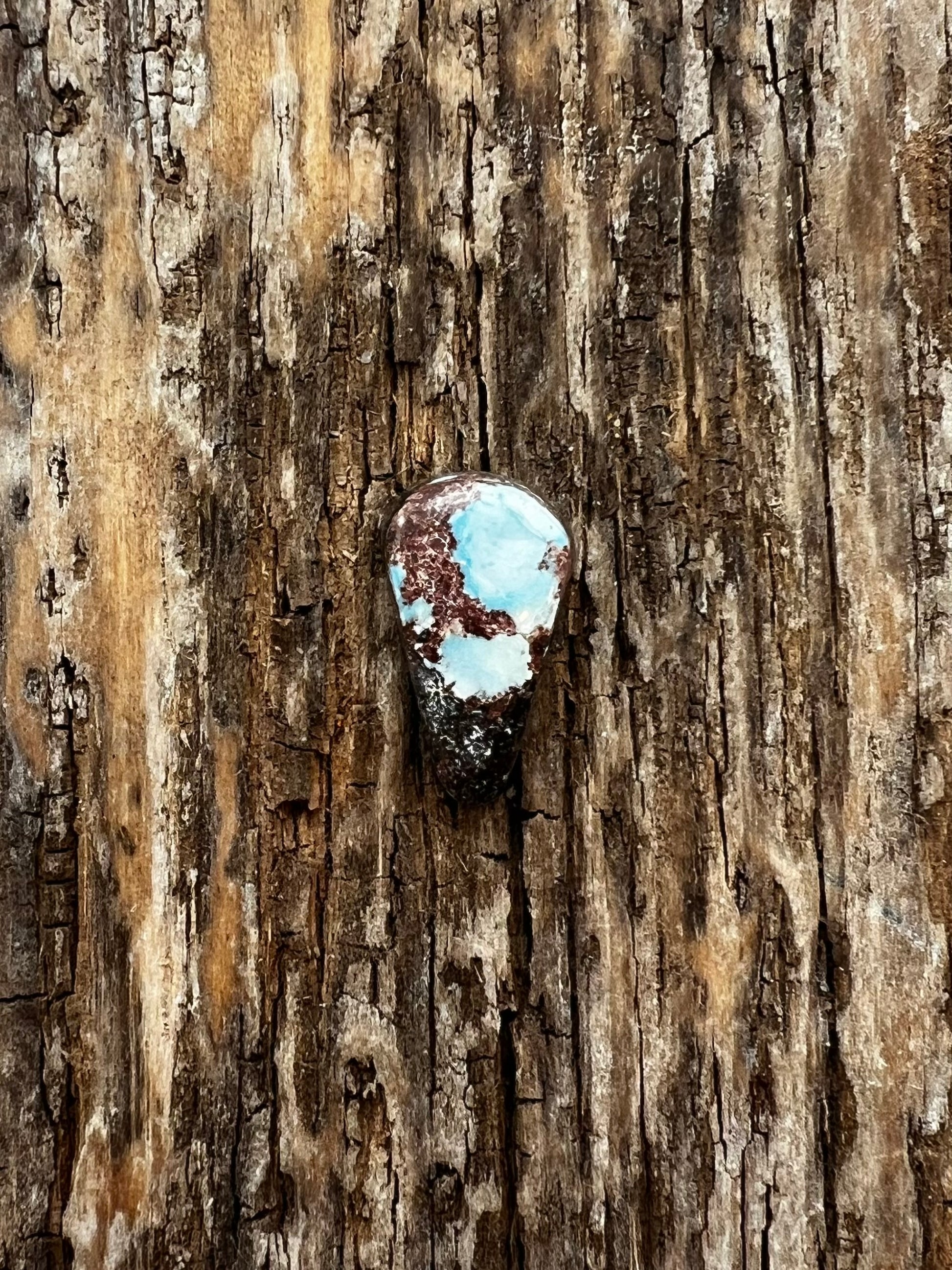 Backed Golden Hill Freeform pear turquoise cabochon. 11mm x 19mm