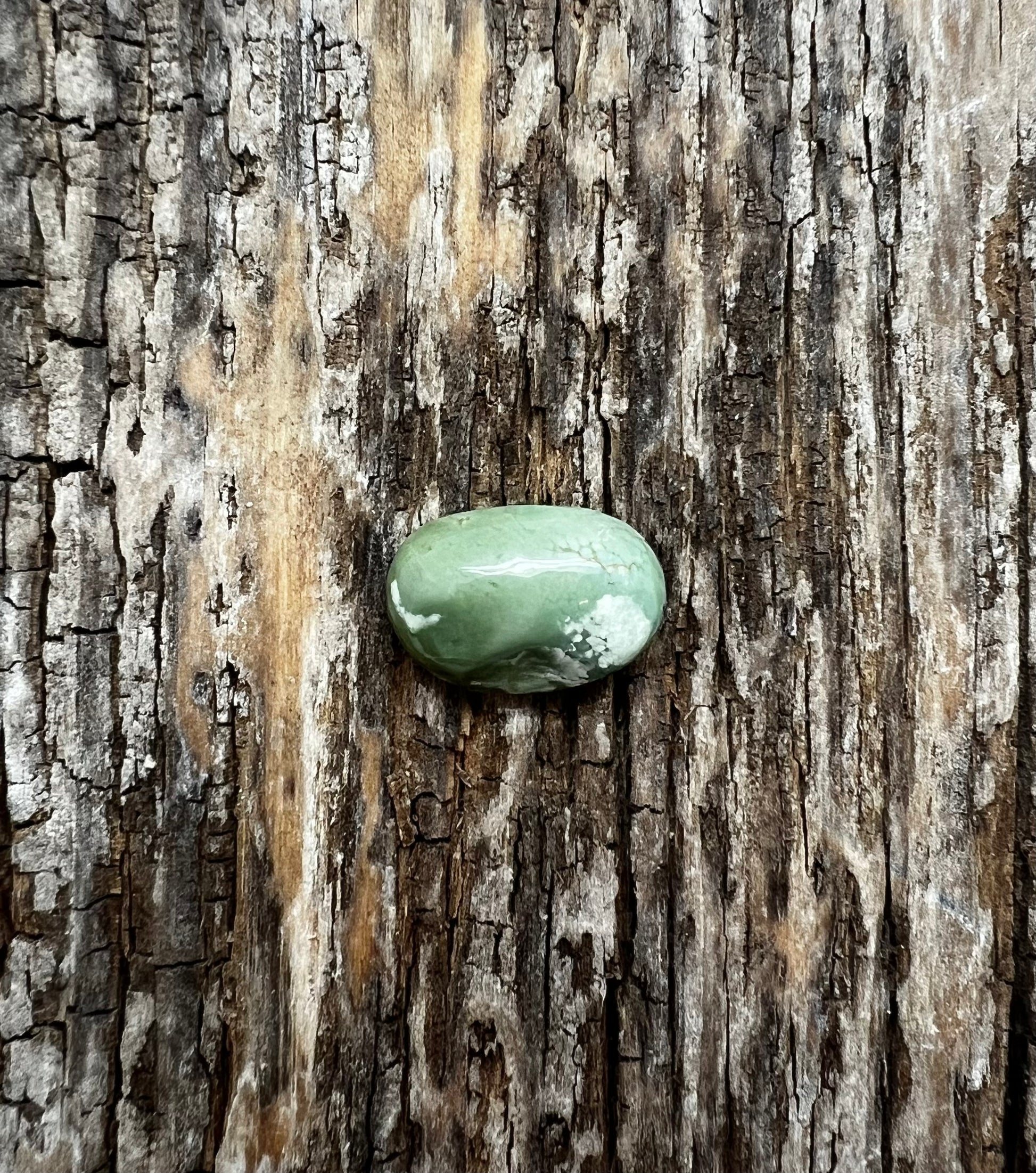 US mined freeform oval unbacked green turquoise cabochon. 17x 11mm.
