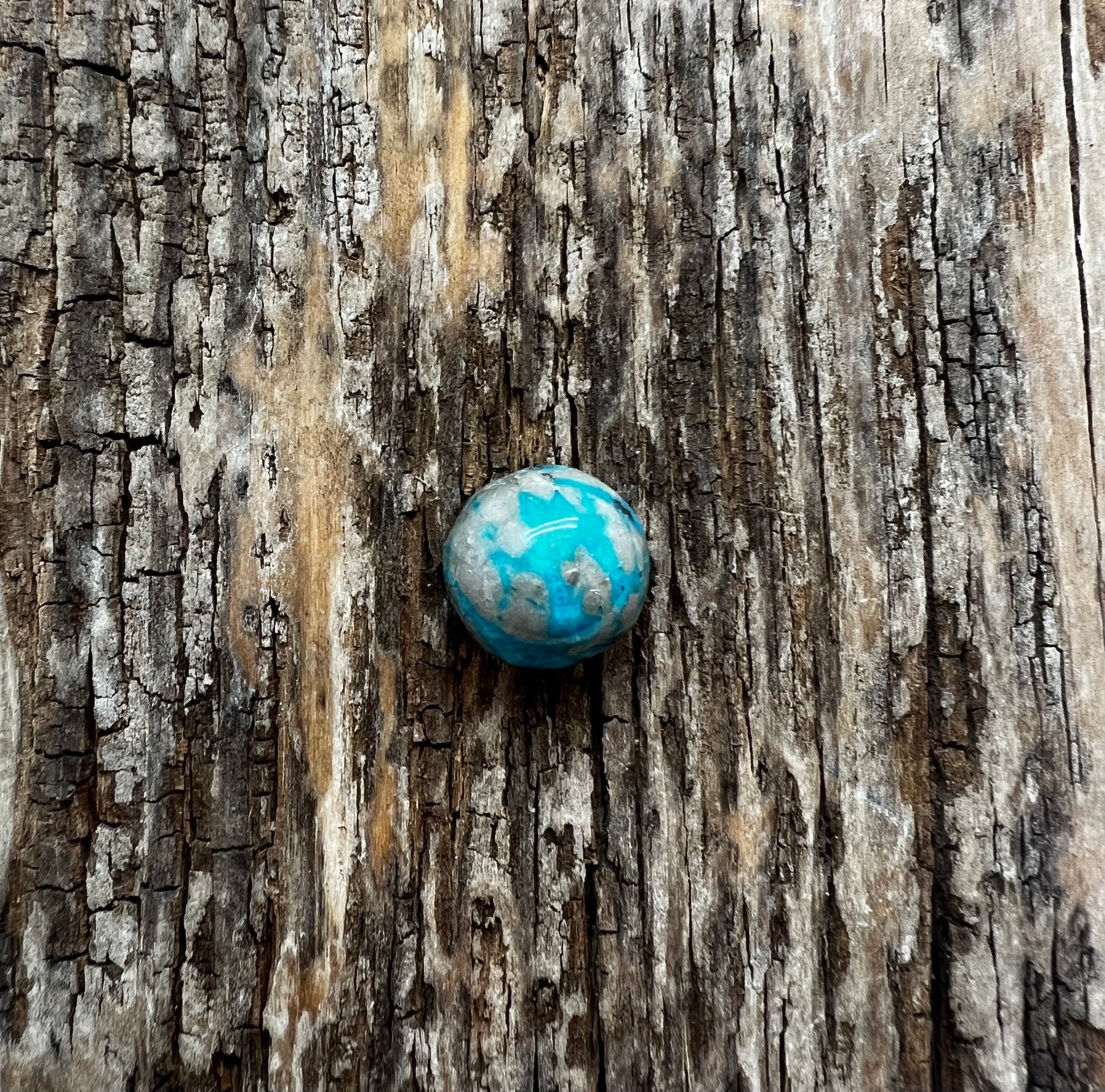 Thick and tall Tibetan unbacked freeform round turquoise cabochon. 14mm.