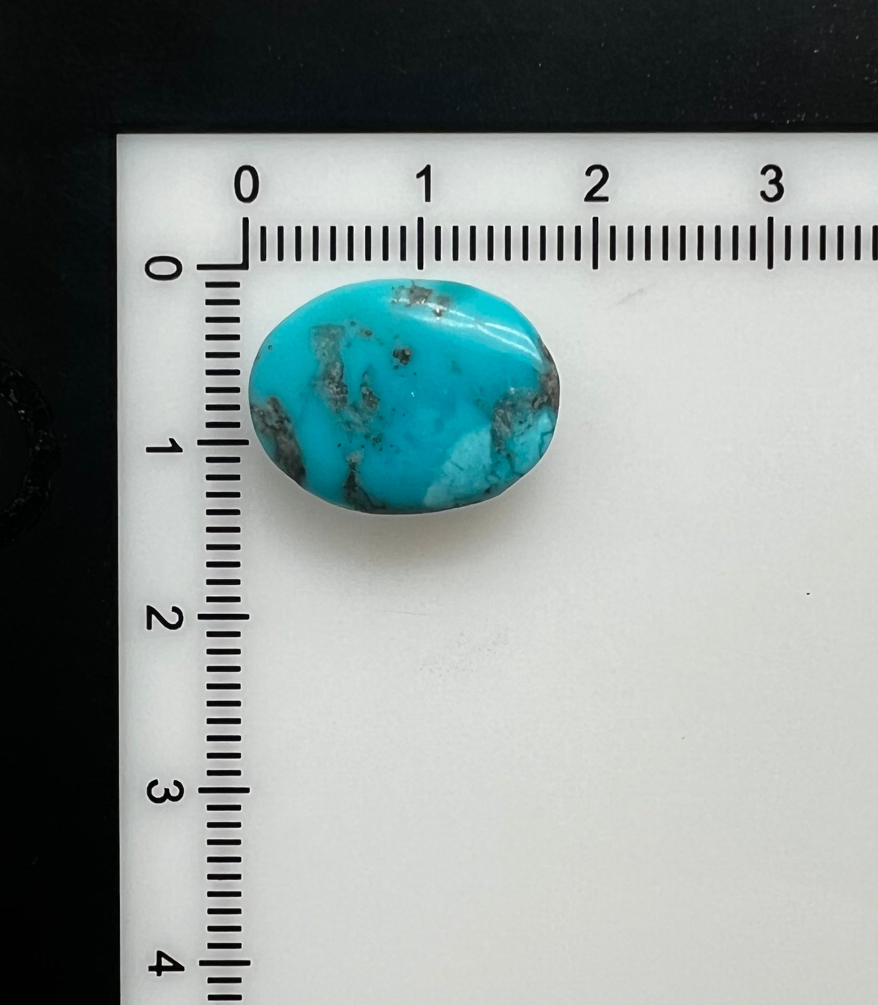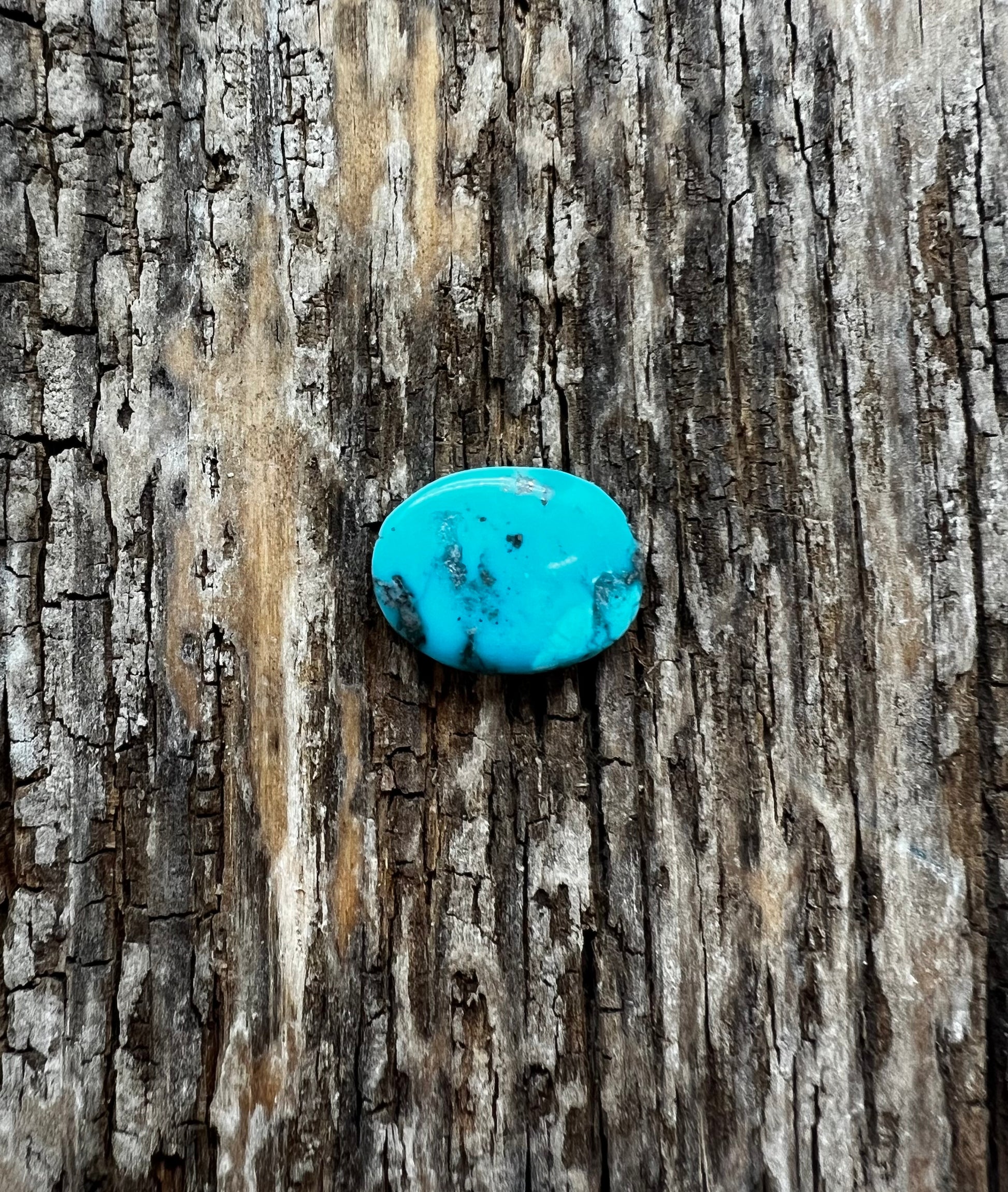 Freeform oval unbacked Tibetan turquoise cabochon. 17x 13mm.