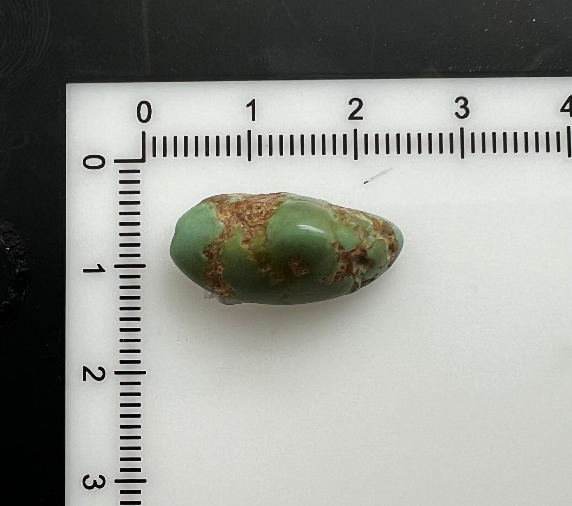 US mined freeform unbacked turquoise cabochon. center comes up to a rounded point. 21x 10mm.